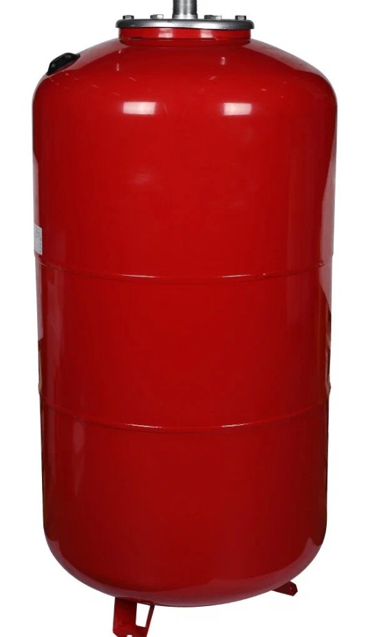 Расширительный бак изготовлен из прочных и устойчивых к воздействию высоких температур материалов, что гарантирует его долговечность. Вертикальная форма и наличие ножек обеспечивают удобство установки даже в ограниченных пространствах, что делает его идеальным выбором для больших систем отопления.