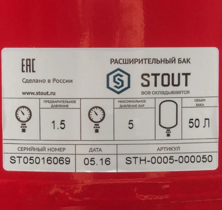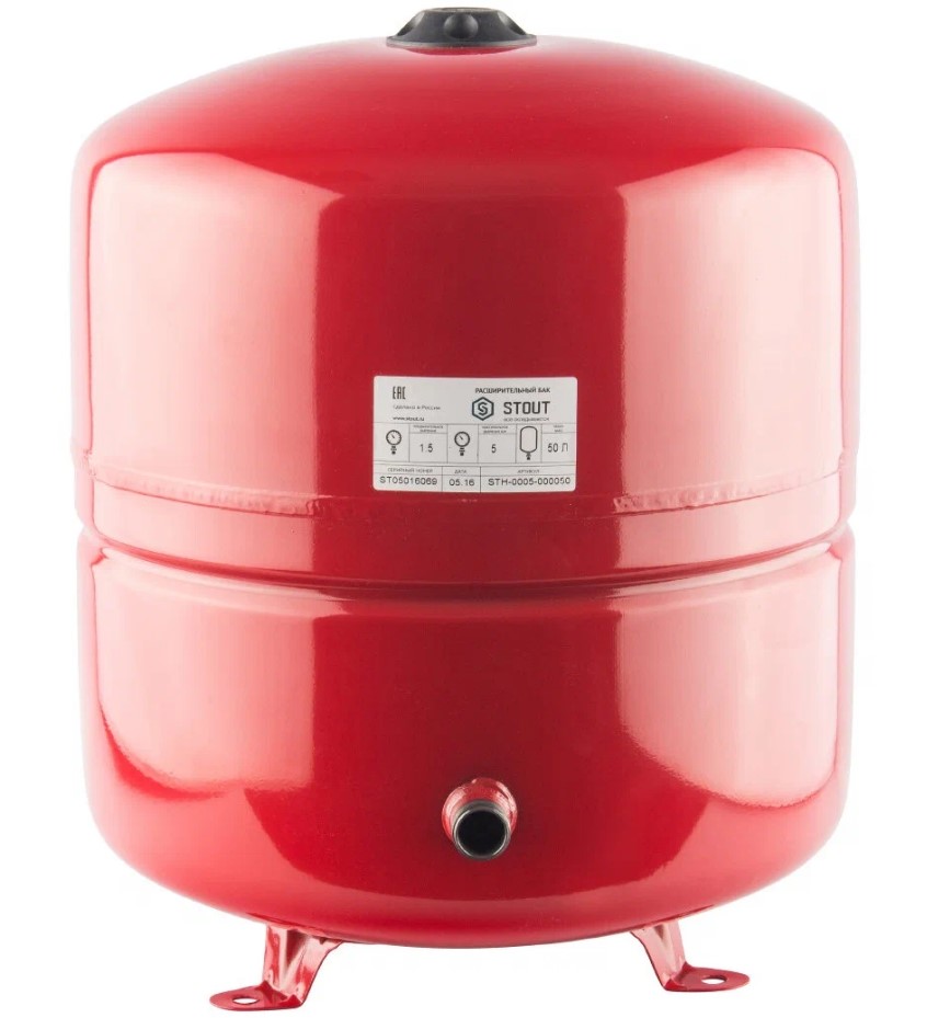 Купить Бак расширительный для отопления 50 л. красный вертикальный ножки, 5 bar STOUT