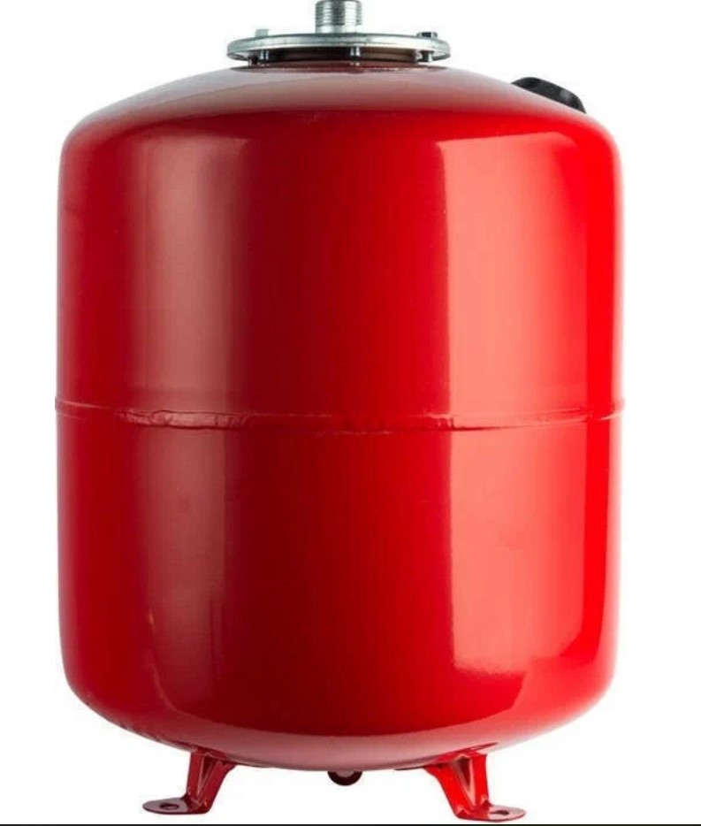 Расширительный бак изготовлен из прочных материалов, устойчивых к воздействию высоких температур и давления, что гарантирует его долговечность. Вертикальная форма и наличие ножек обеспечивают удобство установки даже в ограниченных пространствах.