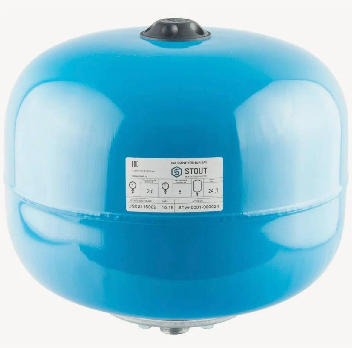 Бак расширительный 24 л. синий вертикальный d 1", 8 bar STOUT