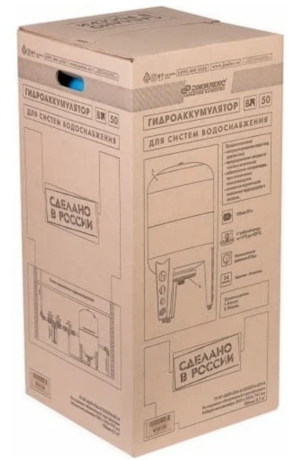 ? В комплект поставки входит: гидропневматический бак объемом 50 л; инструкция по монтажу и эксплуатации.