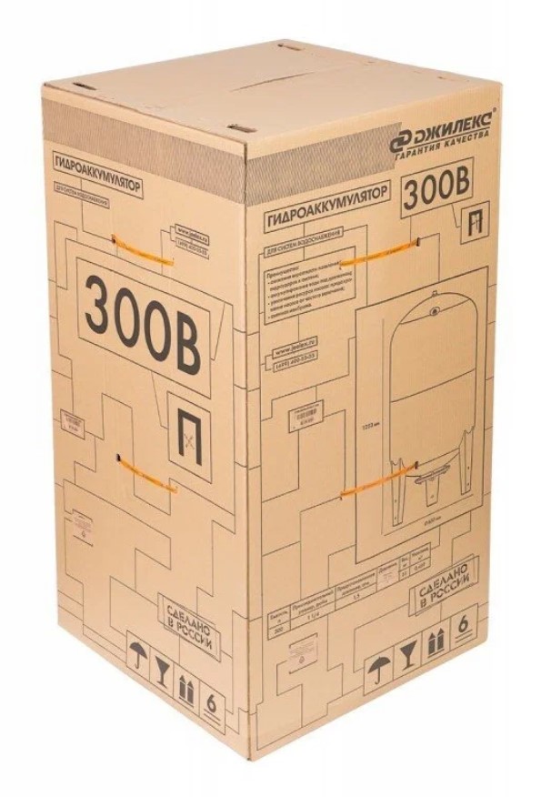 ? В комплект поставки входит: гидропневматический бак объемом 300 л; инструкция по монтажу и эксплуатации.