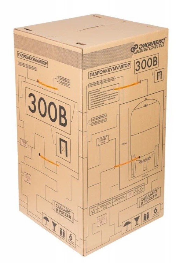 ? В комплект поставки входит: гидропневматический бак объемом 300 л; инструкция по монтажу и эксплуатации.
