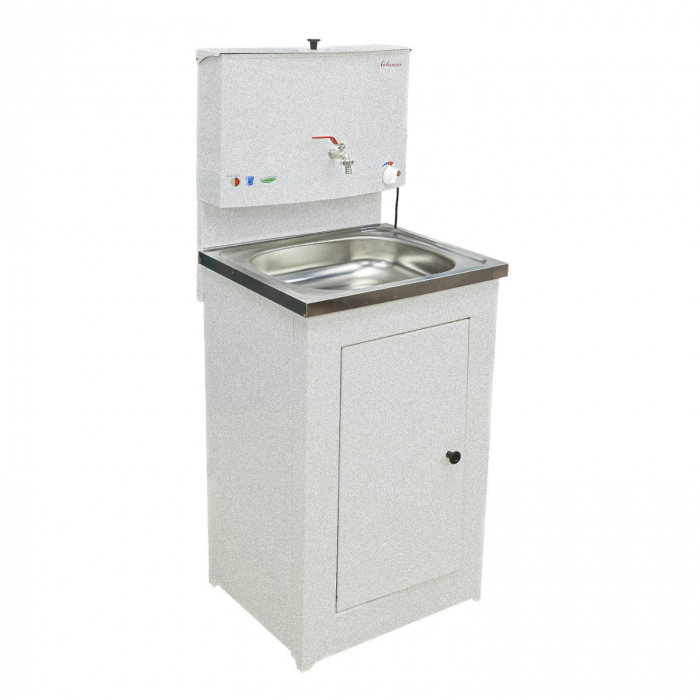 Умывальник дачный в коробе 500х450 белый (ЭВН-20л + мойка нерж) металл Акватекс