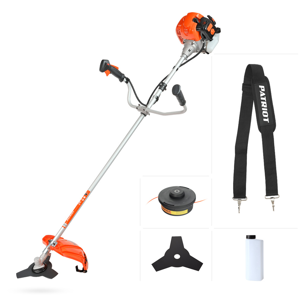 Имеет трехлопастной нож и полуавтоматическую головку, что позволяет скашивать любую траву. Велосипедная рукоятка и система антивибрации обеспечивают комфортную работу с инструментом. Цельнометаллический кованый вал гарантирует надежность триммера.