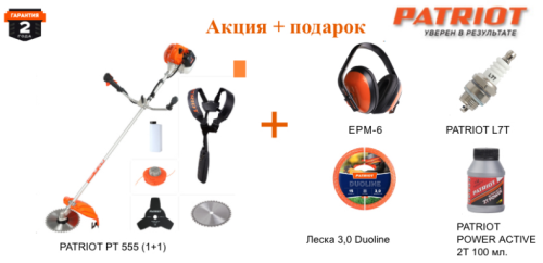 Триммер+штанга (комплект) бензиновый PT 555 (1+1) 52сс; 3.0 л.с. PATRIOT + ПОДАРОК 4 ПРЕДМЕТА!!!