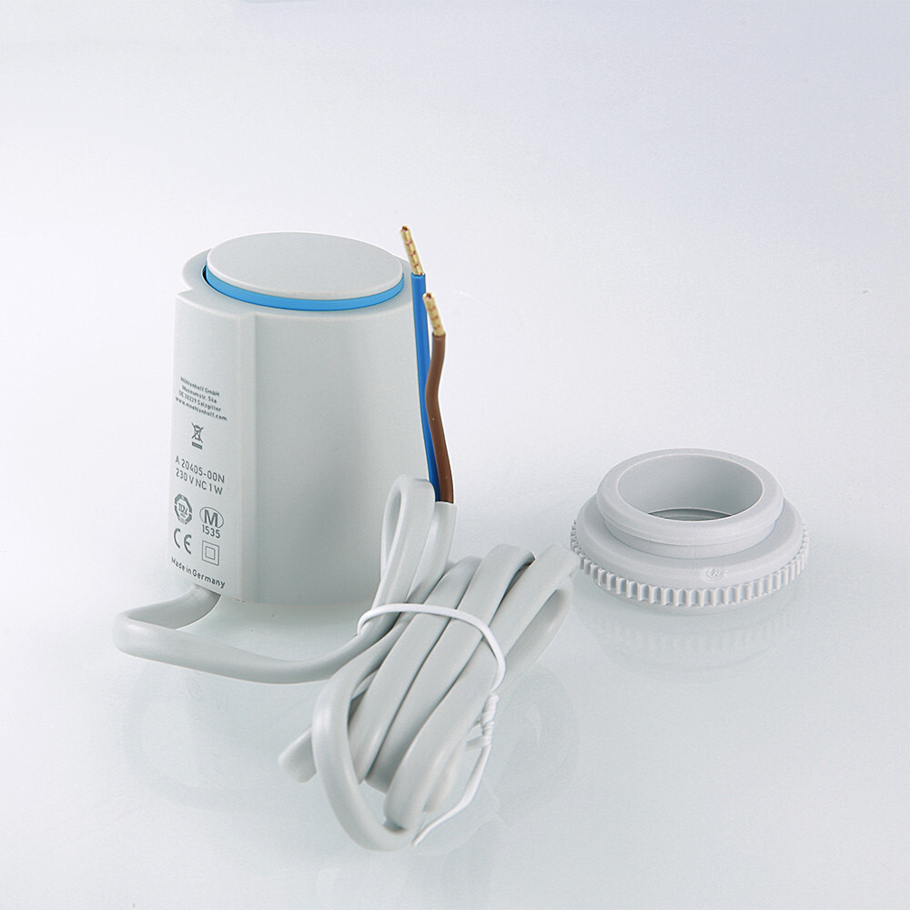 ? Сервопривод для отопительной системы основан на технологии расширения, заполняющего сильфон, армированного парафина, при протекании электрического тока через встроенный нагревательный элемент. Управление происходит по сигналу от комнатного термостата или контроллера, что делает его идеальным выбором для автоматизации систем отопления и охлаждения.