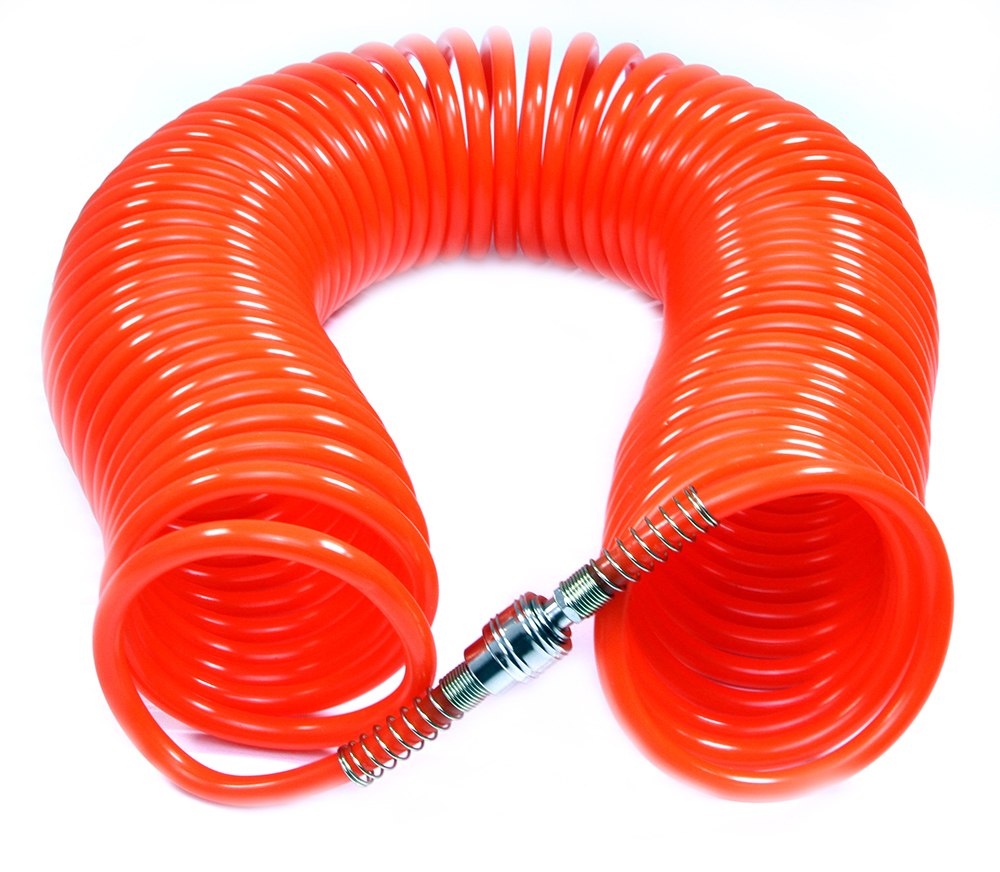 Длина шланга позволяет осуществлять работы в удаленном от компрессора месте. Спиральное исполнение предотвращает перегибы и увеличивает удобство при использовании и хранении.