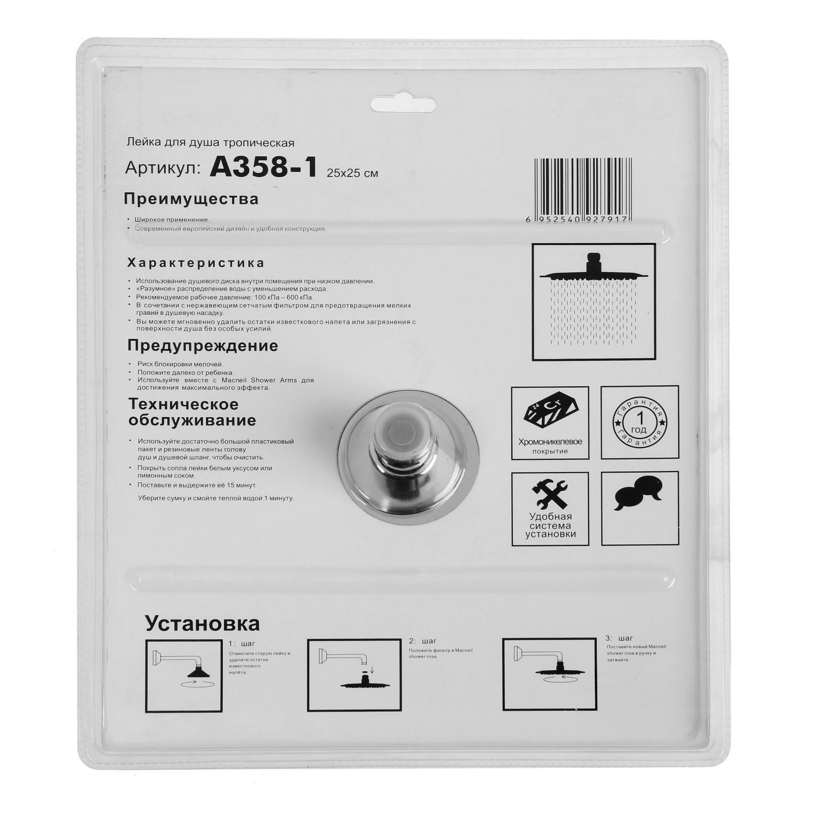 Лейка для душа тропическая квадрат, хром A358-1 Accoona