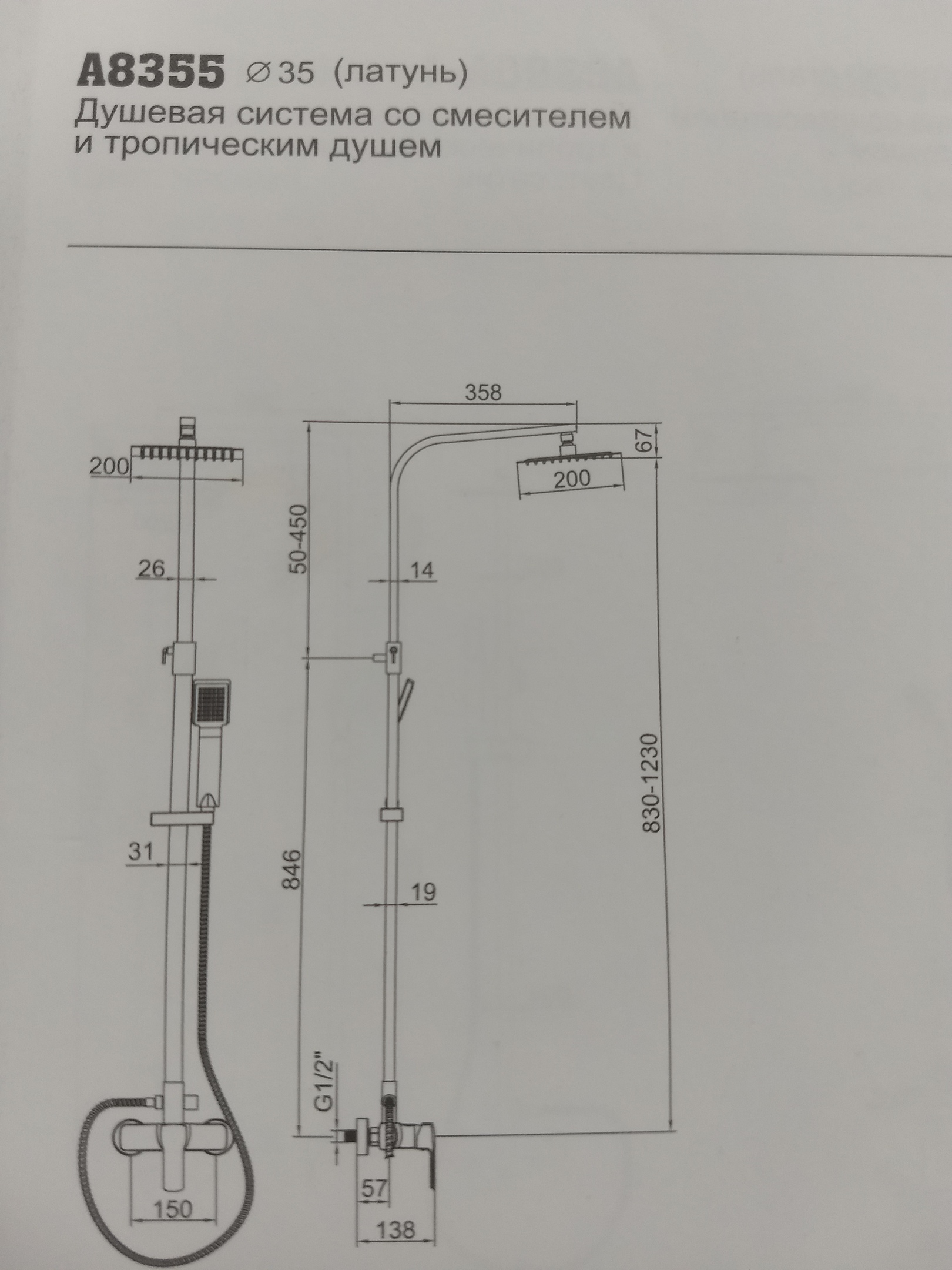 Тропический душ, стойка, смеситель, гарантийный талон |