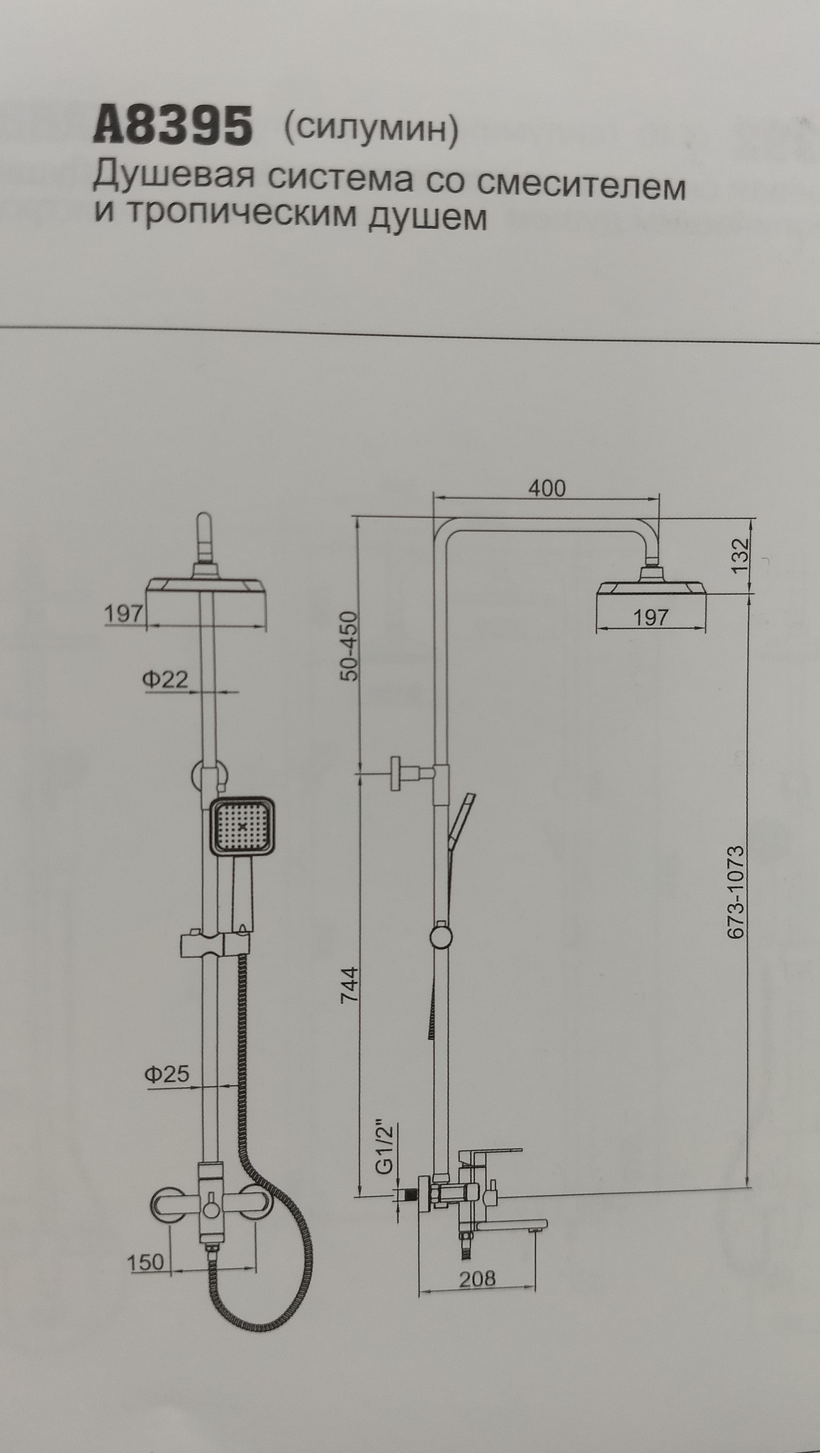 Тропический душ, стойка, смеситель, гарантийный талон |