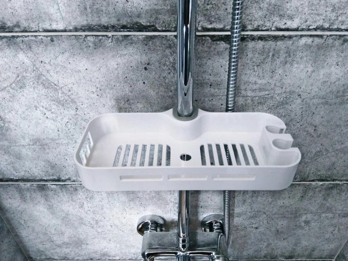 • Полочка для душевых принадлежностей позволяет комфортно размещать различные душевые принадлежности, поддерживая порядок и удобство при использовании системы.