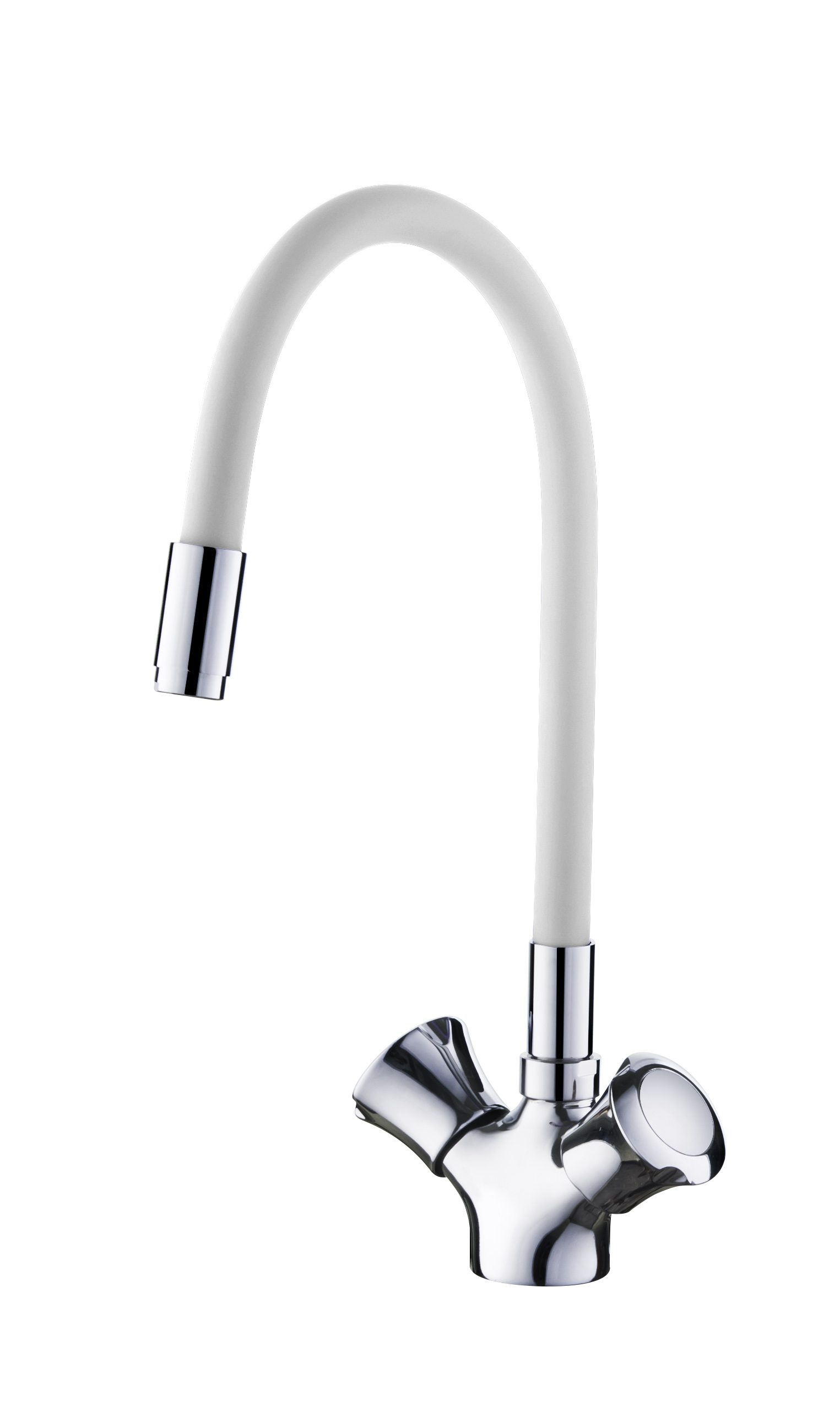Смеситель кухня силиконовый излив ручки Силумин Белый Accoona A4883G (АС5) (АС8`)