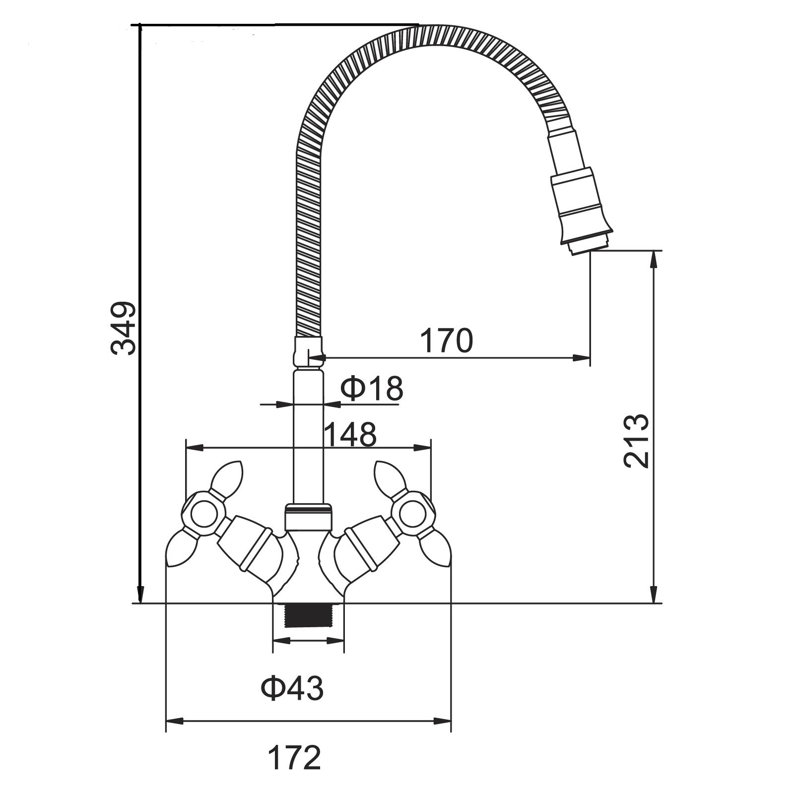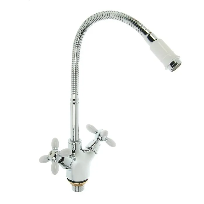 Смеситель кухня с гибким изливом на гайке (крест белый). Силумин, Accoona A4882GБренд Accoona