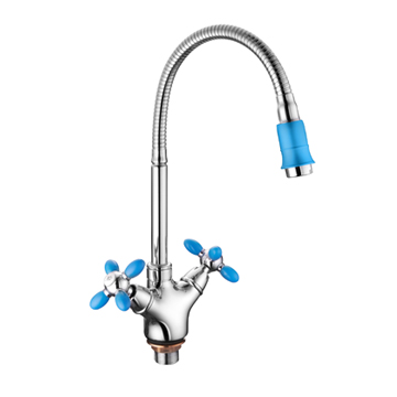 Смеситель кухня с гибким изливом на гайке (крест синий). Силумин, Accoona A4882MБренд Accoona