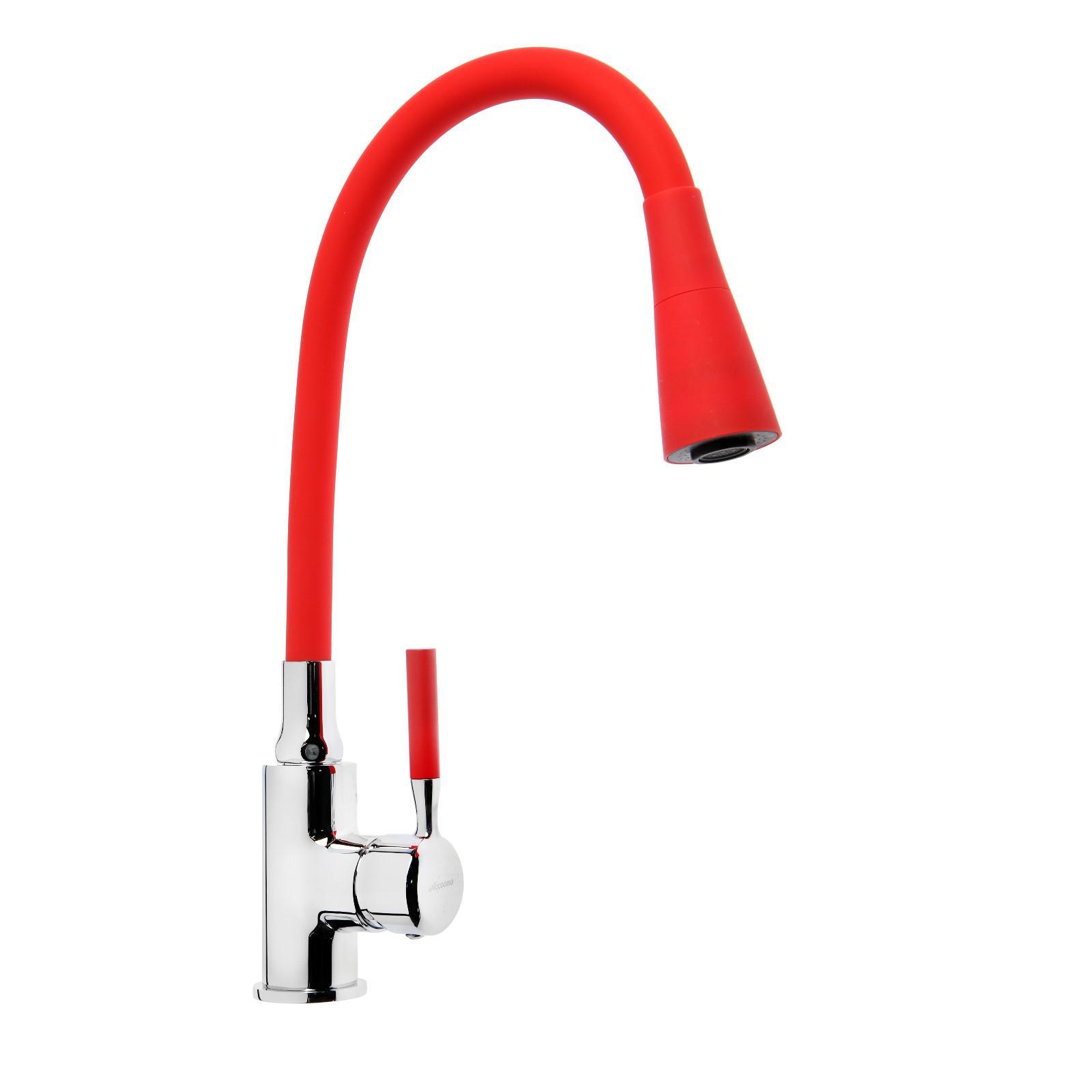 Смеситель кухня силиконовый излив двухрежимный (35) Латунь Красный+Хром Accoona A9890N-1