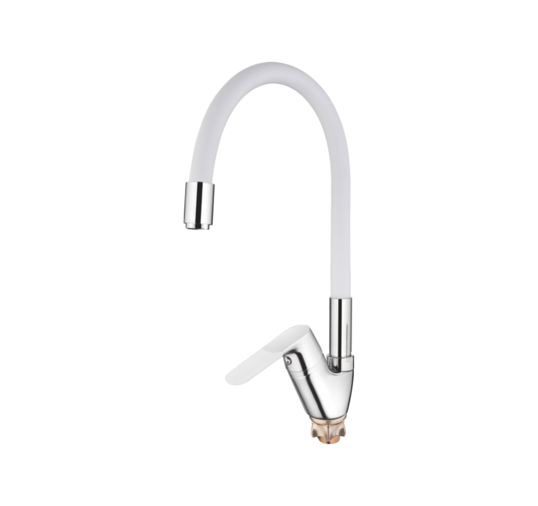 Смеситель кухня силиконовый излив (35) Латунь Белый+Хром Accoona A4819G