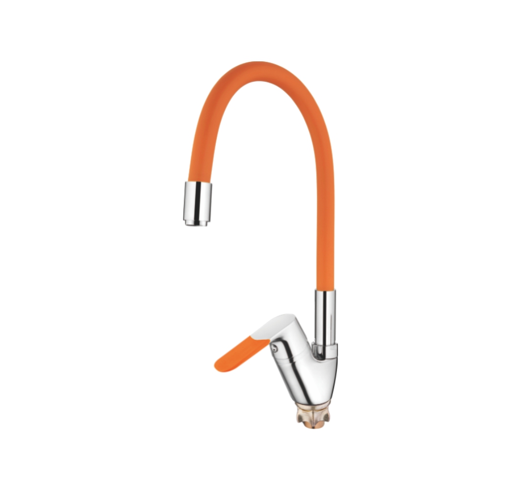 Смеситель кухня силиконовый излив (35) Латунь Оранжевый+Хром Accoona A4819P