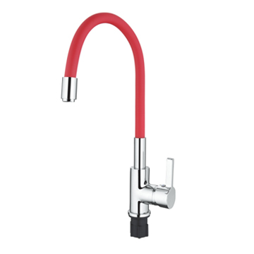 Смеситель кухня силиконовый излив (35) Латунь Красный+Хром Accoona A9890N