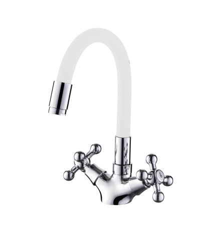 Смеситель раковина крест силиконовый излив Белый+Хром Accoona A9871G (АС6) (АС8`)