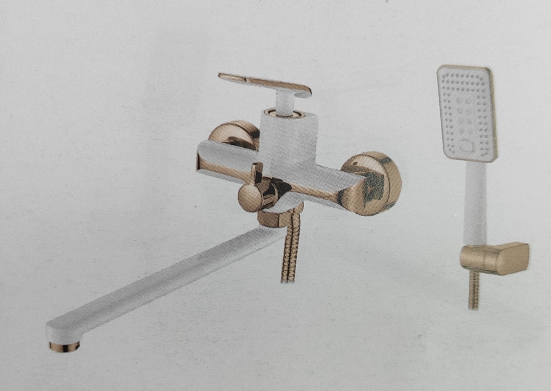 Смеситель ванна прямой нос 35 см (35) дивертор в корпусе Латунь Белый+Розовое золото Accoona A71123GR