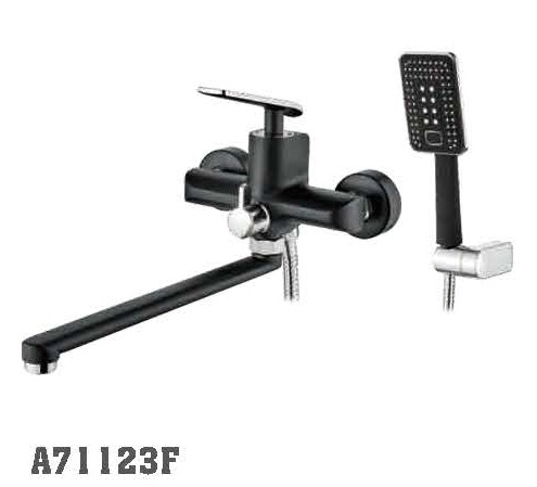 Смеситель ванна прямой нос 35 см (35) дивертор в корпусе Латунь Черный+Хром Accoona A71123F