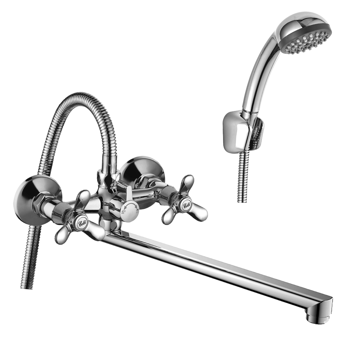 Смеситель ванна прямой нос 35 см крест Латунь/Хром Rossinka Q02-80