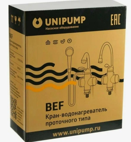 ? В комплект поставки входит: смеситель-водонагреватель проточный BEF-001-02; инструкция по установке и эксплуатации.